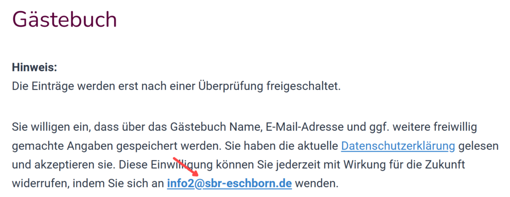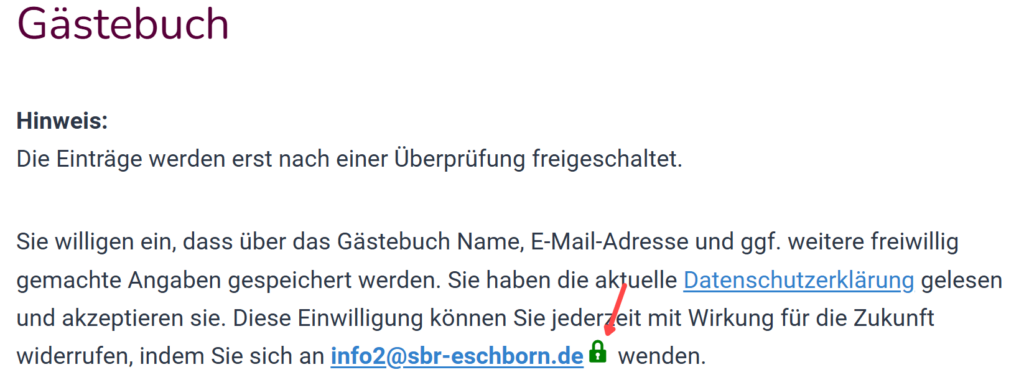 Wir verwenden an einigen Stellen in SBR-Websites E-Mail-Adressen im Klartext, damit Besucher anstelle eines Formulares direkt mit ihrem Mailprogramm schreiben können.