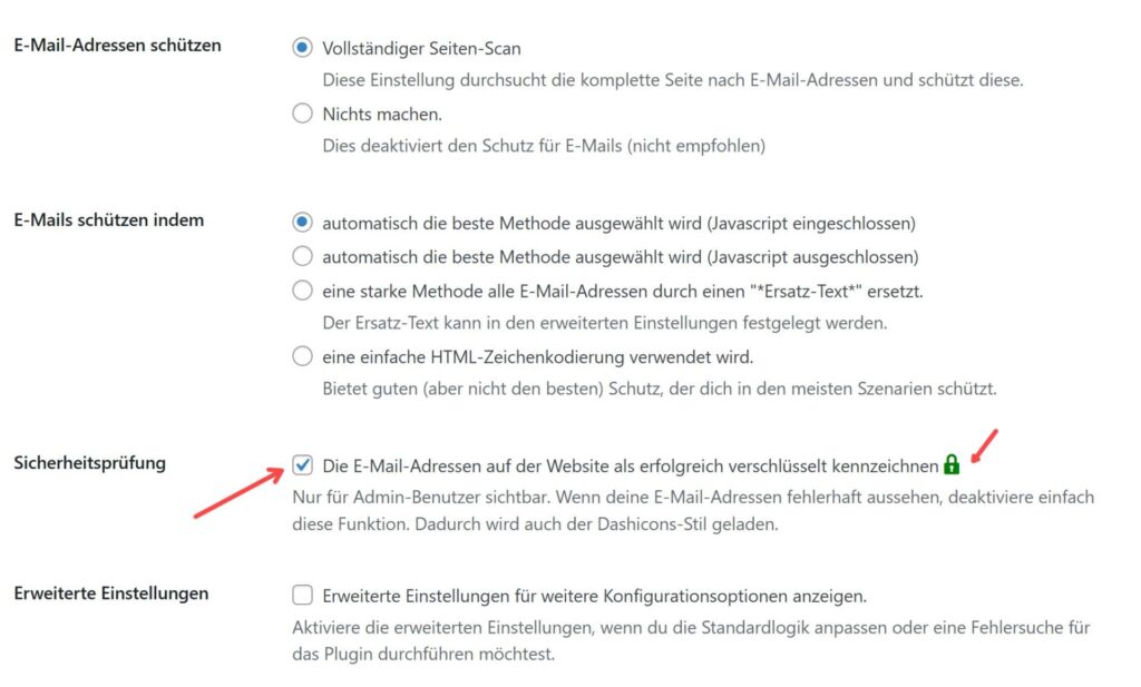 Zur Lösung des Problems empfehlen wir das Plugin „Email Encoder“ zu installieren.
