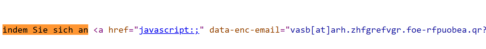 Im Quellcode ist die Verschlüsselung mit Javascript auch zu sehen: